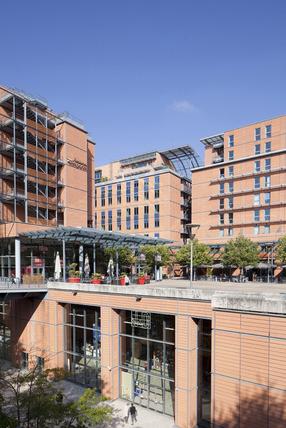 Porte nord-est du centre de Lyon, la Cité Internationale intègre des équipements tertiaires, commerciaux et culturels, ainsi qu’un pôle résidentiel et hôtelier. Une grande rue piétonne intérieure, véritable épine dorsale du site, relie les divers éléments du site.