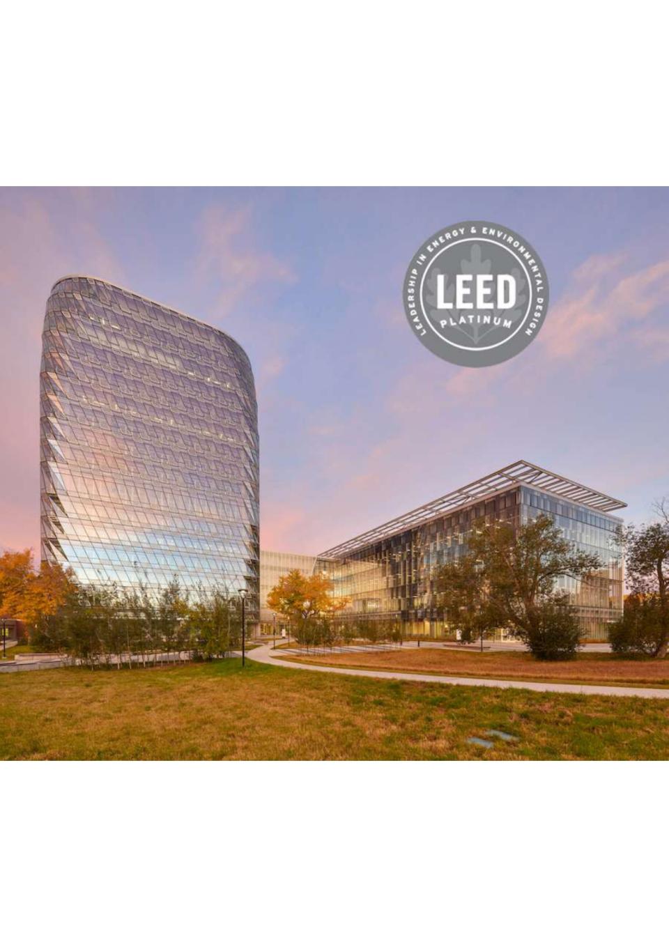 Premier arrêt à Amsterdam avec le bâtiment The Edge, développé par OVG-Real Estate en 2014. D’une superficie de 40 000 m², cet immeuble de bureaux situé à Amsterdam Zuidas, au sud de la ville, est considéré comme l’un des les plus écologiques au monde après avoir obtenu l’un des grades BREEAM les plus hauts jamais accordé par la BRE : 98,36 %. Ce score a notamment été atteint grâce à la façade du bâtiment au vitrage fortement isolant dont la partie sud comporte 6 000 mètres carrés de panneaux solaires permettant d’alimenter le bâtiment en énergie. Ce dernier consomme d’ailleurs jusqu’à 70 % d‘électricité en moins par rapport à des bâtiments similaires grâce à l’installation de LED reliées à des capteur qui anticipent les besoins en éclairage plutôt que de fonctionner à un rythme régulier, mais également grâce à un système de stockage de chaleur/froid (WKO) peu énergivore.