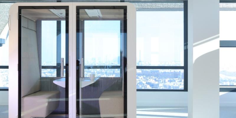 Les cabines ont souvent des portes en verre pour ne pas se sentir enfermé - ou afin de savoir si elles sont occupées- certaines peuvent aussi être totalement opaque pour le travail d’idéation et d’inspiration, dans une « boîte à rêves »… Tout peut s’imaginer. SBSPods a même conçu une cabine avec des verres en vitrophanie qui s’obstruaient sur demande, par impulsion électrique, en partenariat avec Saint Gobin.