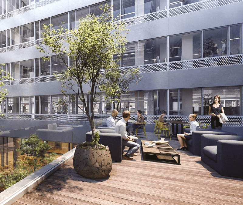 Nous allons créer une autre aile qui conduira à un vaste jardin de 700 m² au coeur du bâtiment. Cette opération combine des travaux de densification et d’amélioration des espaces de travail qui seront désormais équipés de terrasses végétalisées et ensoleillées. Nous pensons qu’il est essentiel d’intégrer ces espaces de verdure dans les bâtiments car cela participe au bien-être en entreprise des salariés. Rue Bayard, dans les anciens bureaux de RTL, nous allons découper la parcelle en deux. Une partie sera conservée et l’autre complètement reconstruite en structure bois. C’est un projet inédit à Paris.